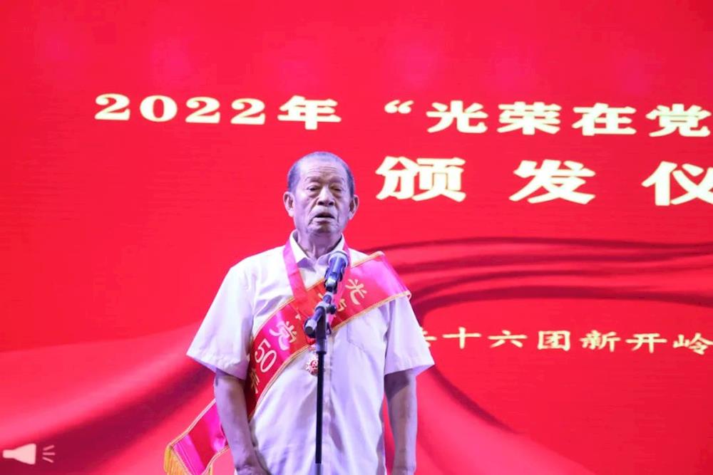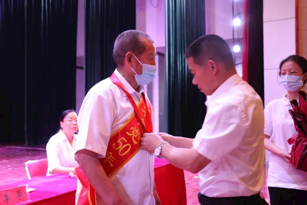 会上,李学为党龄50年的老党员颁发“光荣在党50年”纪念章,表达对老党员们的崇高敬意,让老党员们感受到了党组织的关怀和温暖,以此勉励他们珍惜荣誉、永葆政治本色,弘扬党的光荣传统和优良作风,继续为党的事业增光添彩。随后,老党员代表蒋大海发言。