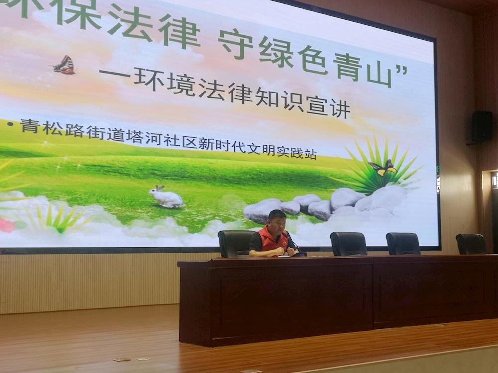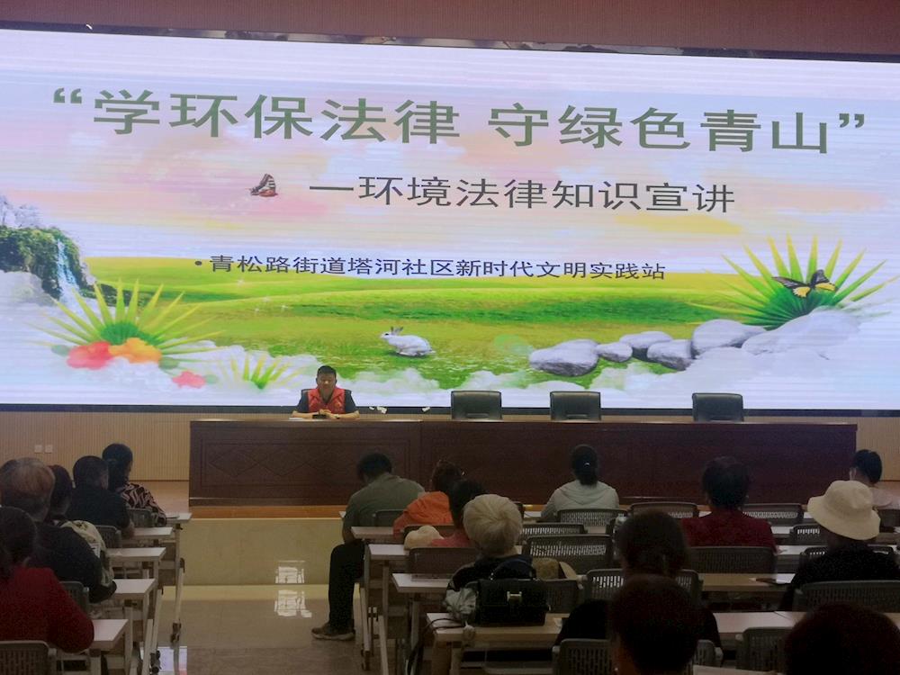 6月2日,第一师中级人民法院行政审判庭庭长王绯走进塔河社区,面对面向社区居民讲解《中华人民共和国环境保护法》《中华人民共和国民法典》等相关法律法规,普及了生态环境保护、野生动植物资源保护、土地及林木资源保护等方面的法律知识,引导群众知法、守法、用法。同时,结合近年来环境资源保护及破坏生态环境的典型案例,以案释法,为群众讲解了生态环境保护的重要性及破坏环境所需承担的法律后果,现场解答群众提出的环境保护法律问题,号召群众从身边小事做起,节约资源、保护环境,强化环保意识和法律意识,共同守护我们共同的家园。