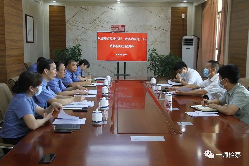 2020年8月12日上午,师市党委书记、政委卢跃东赴第一师检察分院实地考察调研。师市党委办公室负责人,分院在家班子成员,浙江省检察院援疆干部出席调研座谈会。