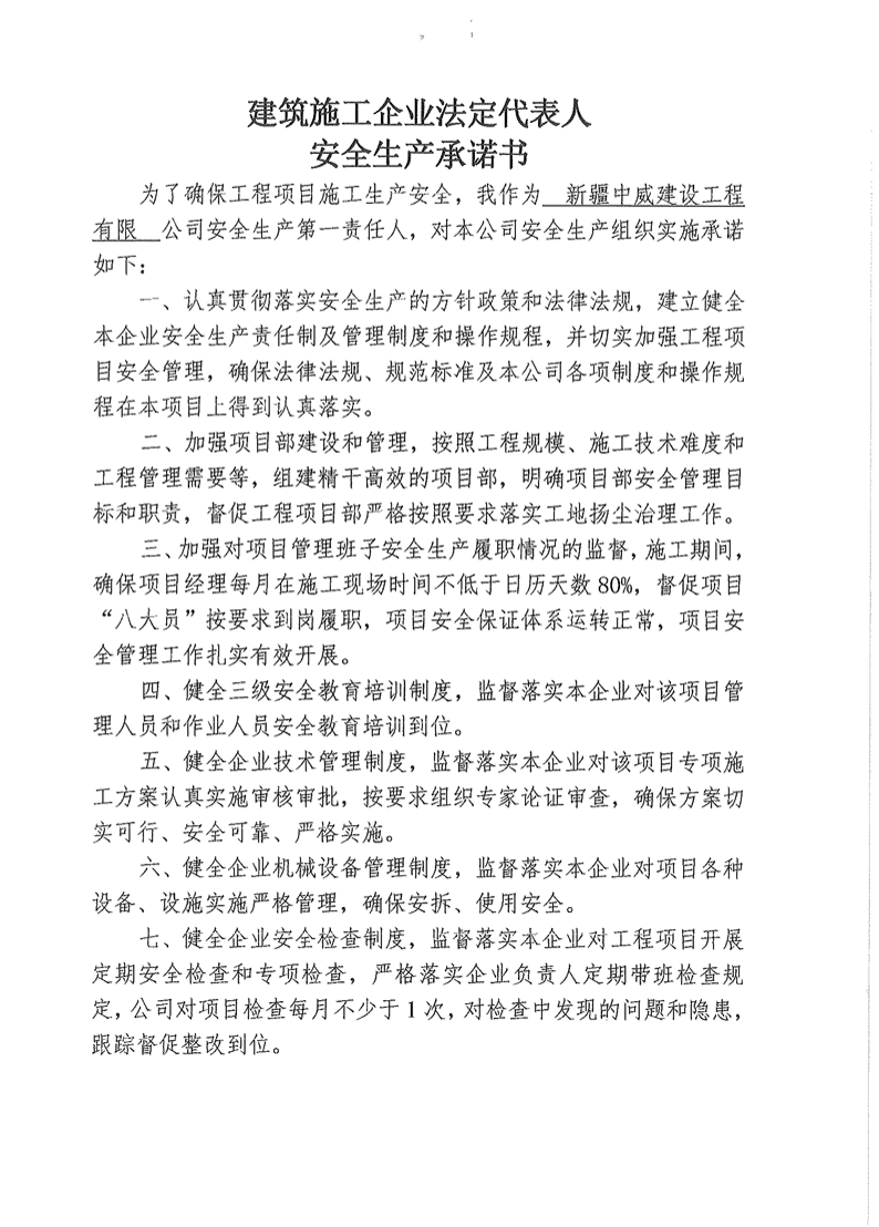 中威建司--安全生产承诺书