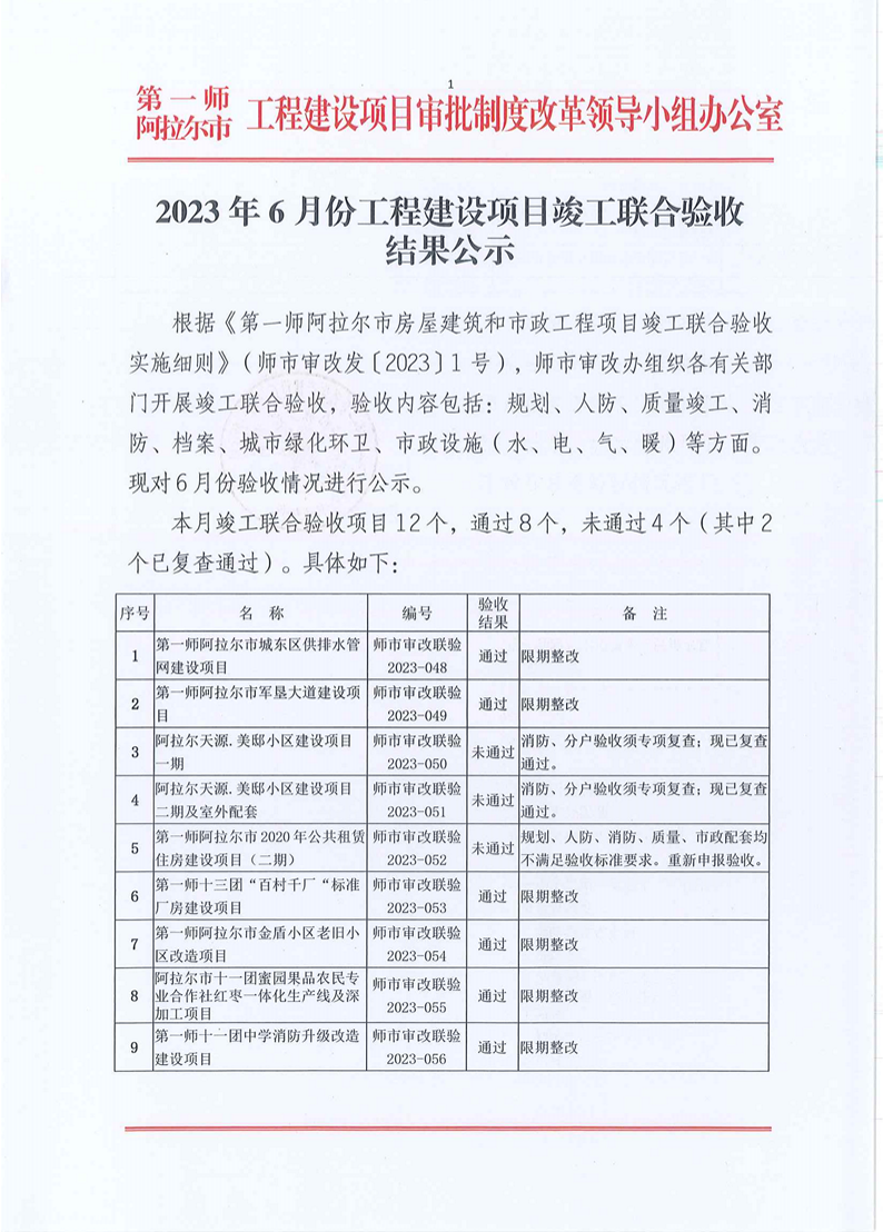 2023年6月份工程建设项目竣工联合验收结果公示
