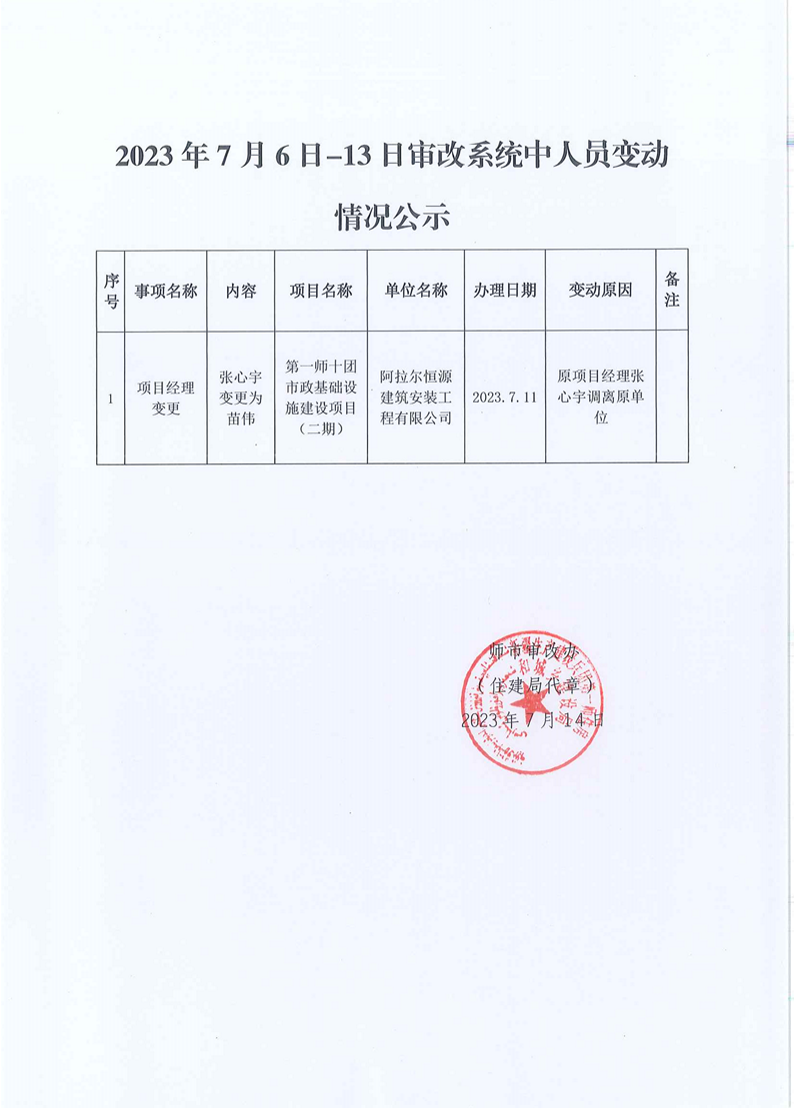 2023年7月6日-13日审改系统中人员变动情况公示