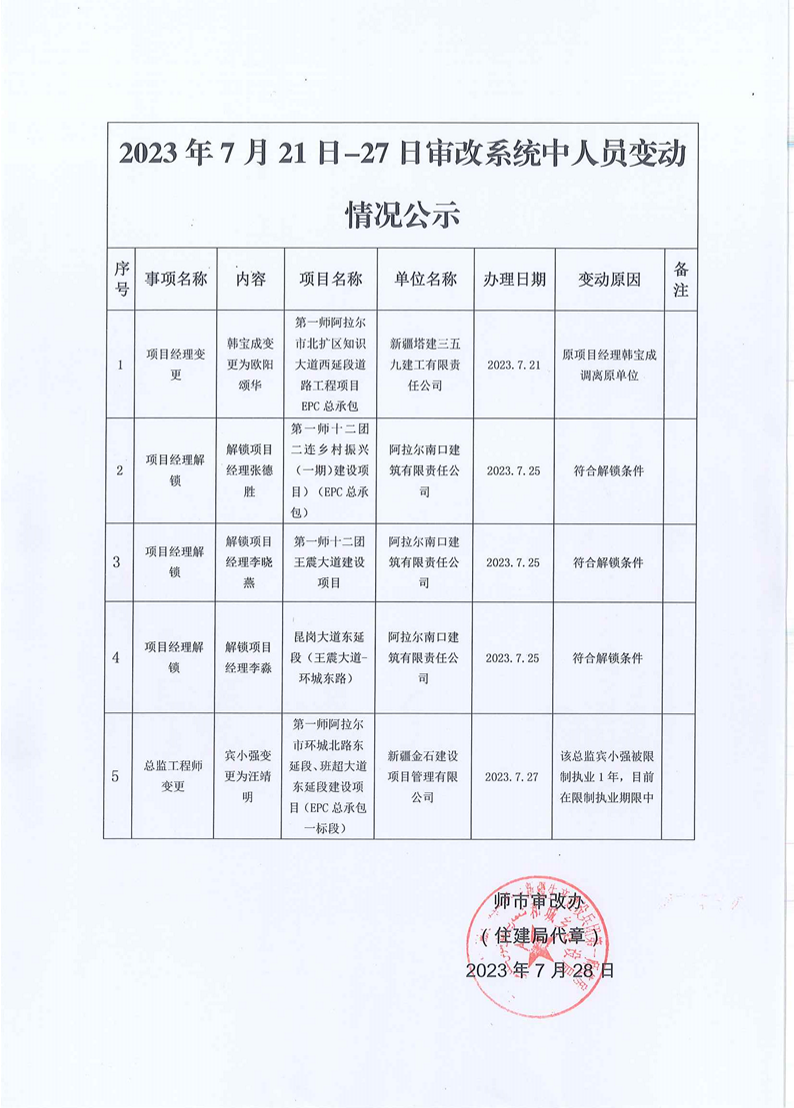 28号审改系统中人员变动情况公示