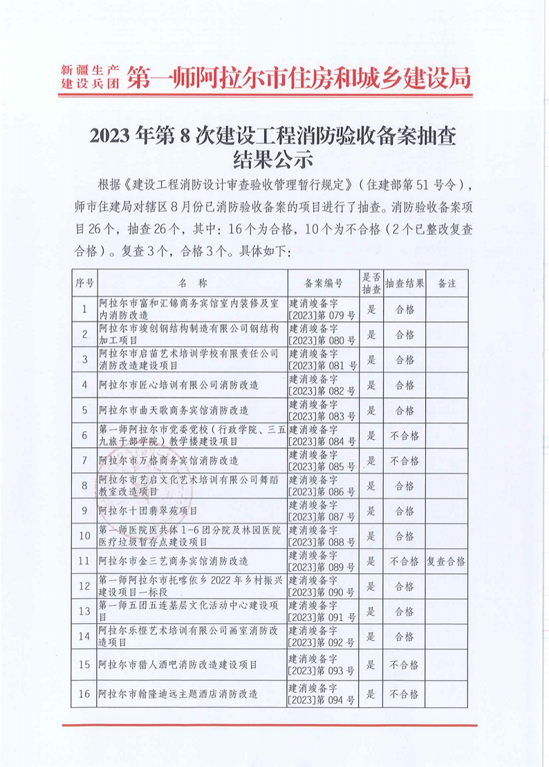 2023年第8次建设工程消防验收备案抽查