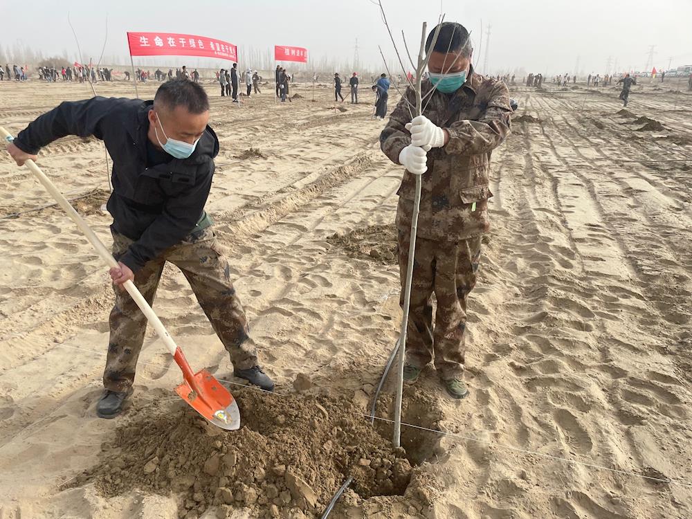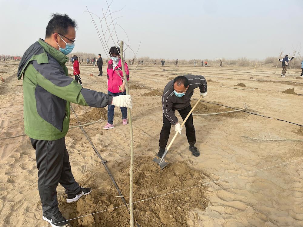 阳春三月,新绿初绽,3月18日,第一师阿拉尔市民政局全体人员来到了十二团10连阿沙公路开展“年年植树树成荫,代代造林林成森”主题党日活动,以实际行动践行习近平生态文明思想。