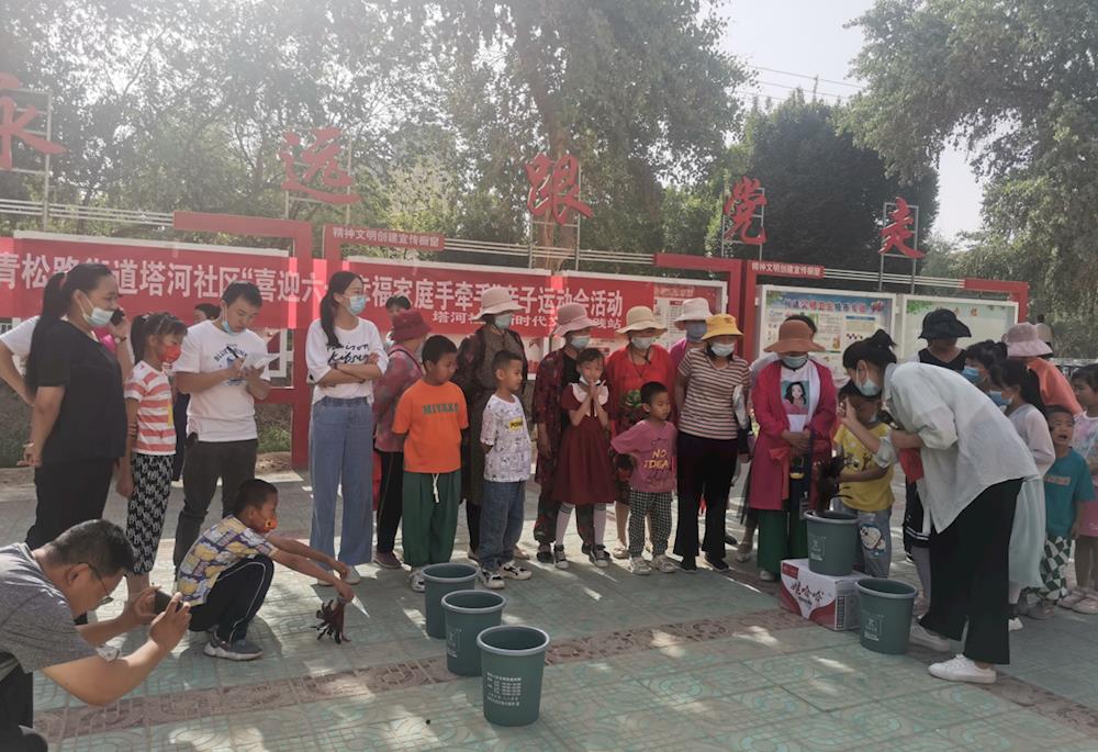 塔河社区在新苑新村小舞台开展亲子活动,活动设有“盲人敲锣”、“两人三足”、“双人跳绳”等简单有趣的项目。参加比赛的家长和孩子们配合默契,孩子们个个精神饱满,自信喜悦,大家都积极融入其中。既秉持着比赛精神,又兼顾着友谊,既开心快乐,又勇争第一。整个活动,井然有序,到处洋溢着浓浓的亲子之情。
