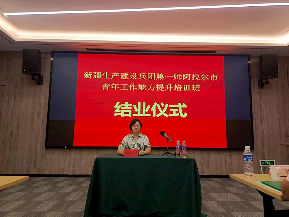 2022年8月11日,为期八天的师市青年工作能力提升培训班在浙江省杭州市落下帷幕。师市团委副书记、少工委主任、青联主席侯丽丽参加结业仪式并讲话。