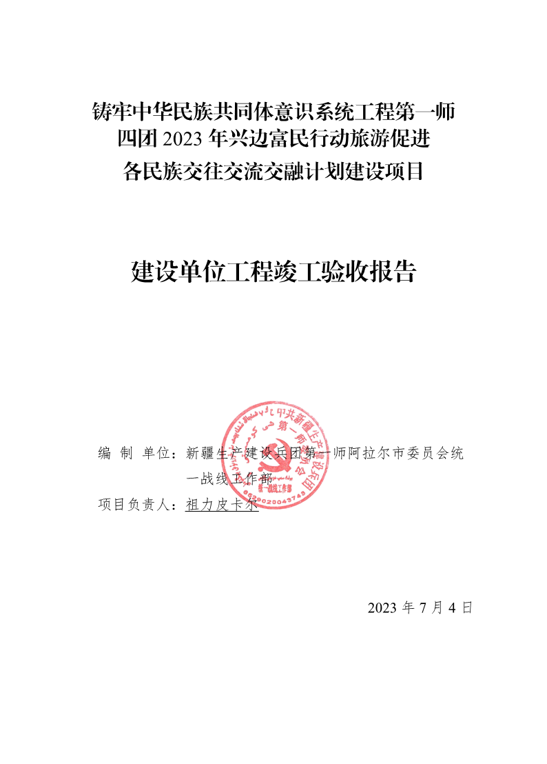 铸牢中华民族共同体意识系统工程第一师四团2023年兴边富民行动旅游促进各民族交往交流交融计划建设项目竣工验收报告