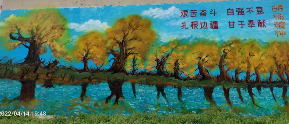 师市美术家协会主席贾贺然、副主席葛云科、蔡晓霞等10余名美术家参与此次活动,对桃园社区、花园社区沿街及重要位置30余面、近千平米的外墙进行美术主题创作,以社会主义核心价值观、兵团精神、胡杨精神、三五九旅精神,尊老爱幼、文明礼让等传统美德以及新疆自然风光等为主要内容的墙绘作品。让居民群众坐在“家门口”就能享受文化和艺术之美,在潜移默化中自觉接受文明礼仪的教育。