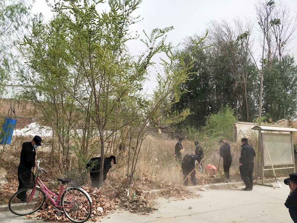 4月10日下午16时,桃源社区组织辖区15个单位38名志愿者,对辖区无人管理区域摩托车一条街创城宣传板面进行清洗擦拭;组织辖区单位5名志愿者及四户商铺对无人管理区域小二楼多个卫生死角进行清理;联系创城挂钩部门师市公安局、水利局50余人对塔里木大道原幸福路派出所周围杂草进行清理,刘光辉副师长亲临现场进行工作指导。