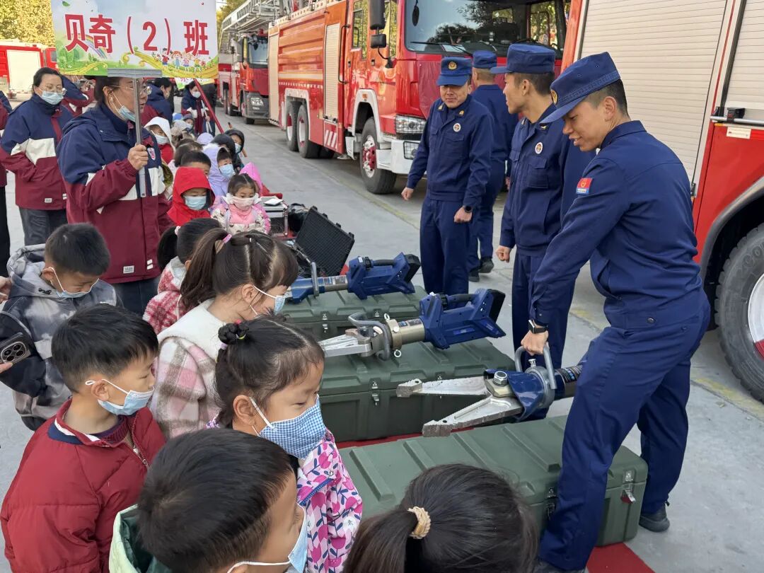 室外的装备展示区同样"硬核"吸睛。12辆不同类型的消防车整齐列队,36类280余件救援器材依次排开,构成了一道特殊的"安全风景线"。专职消防队、危化品应急救援队等专业人员现场讲解装备的功能和操作方法,不少小朋友在老师的陪同下爬上消防车,近距离触摸救援器材,过足了"消防瘾"。