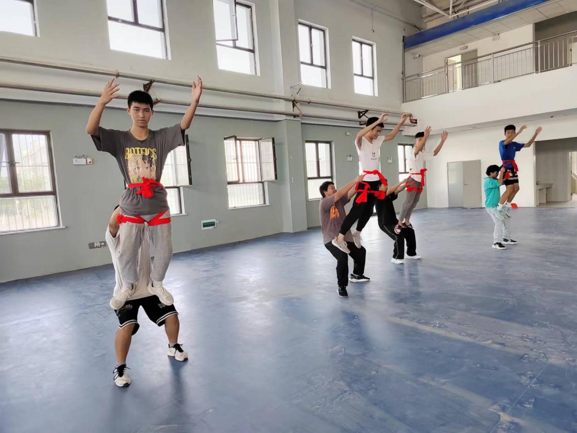 图为:舞龙队学员正在进行基本功训练(宋勇 摄)