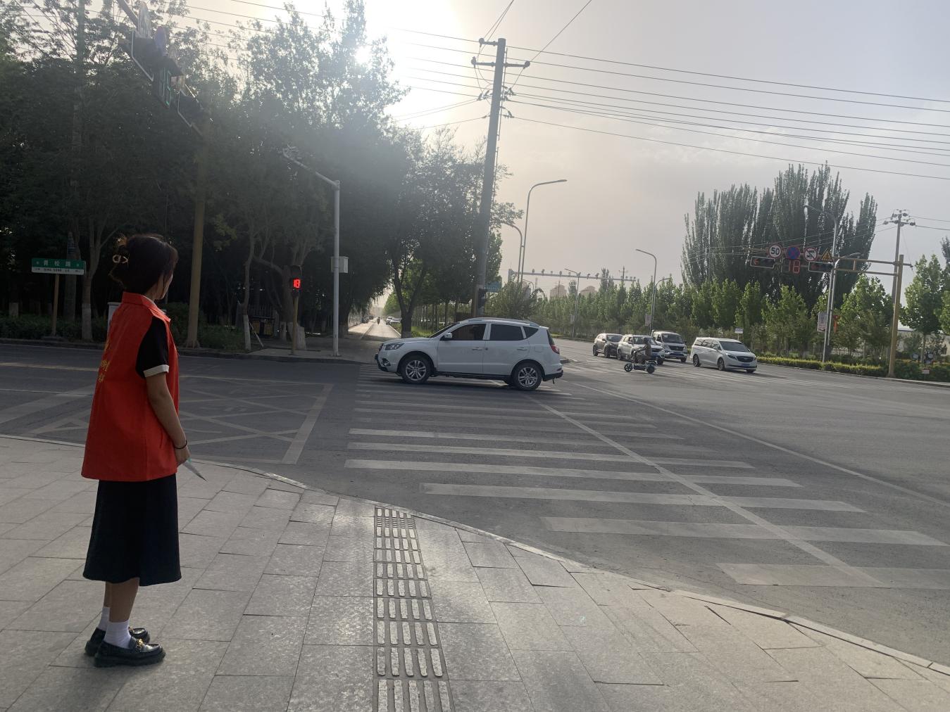 “文明在脚下,文明在交通。作为文明交通劝导的志愿者,我会按照文明交通岗志愿服务点位分工,严格按照早晨9:00至10:00,下午19:30至20:30 的交通劝导志愿服务活动,尽职尽责站好每一班岗,积极引导居民群众文明出行,营造文明和谐畅通有序的道路交通环境,助力阿拉尔市成功创建文明城市。”志愿者石延菲说。(文图:姜彩妹)