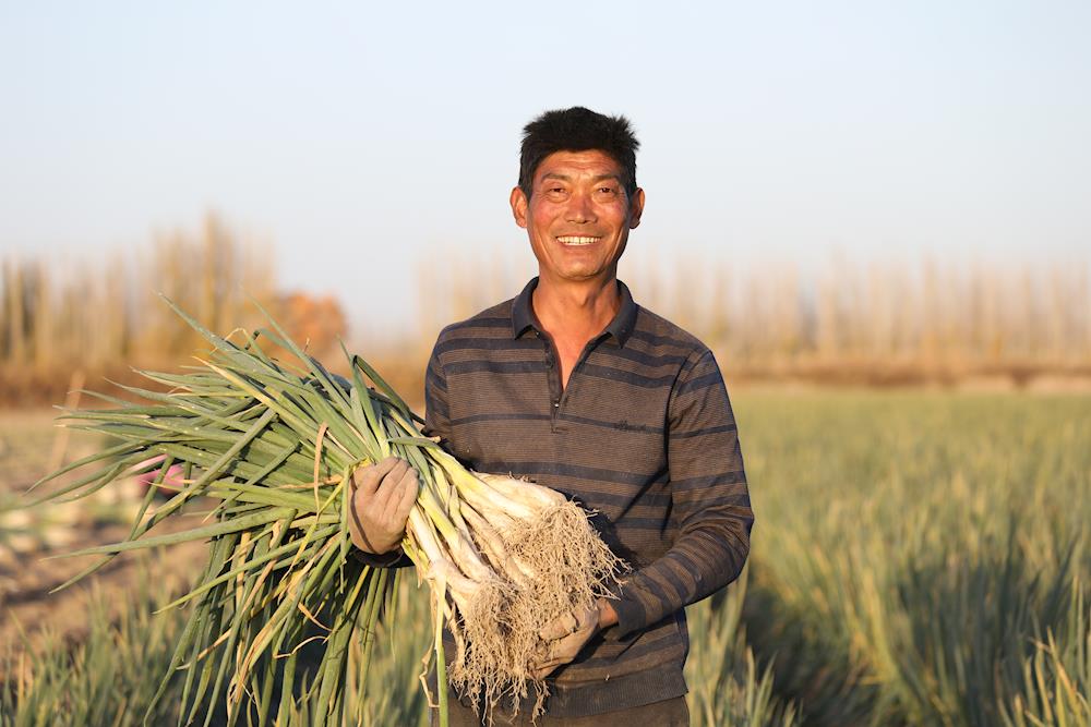 新疆兵团一师八团:大葱喜丰收 “葱”农乐开怀