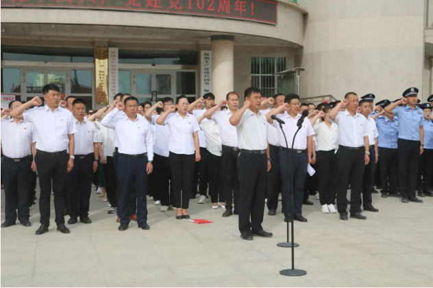 为庆祝中国共产党成立102周年,弘扬伟大建党精神,7月1日,十二团于团机关广场举行建党102周年“七一”升国旗仪式。十二团在家团领导、机关全体工作人员、派出所全体民辅警参加升旗仪式。