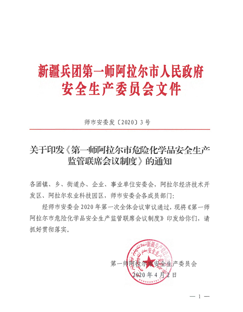 关于印发《第一师阿拉尔市危险化学品安全生产监管联席会议制度》的通知