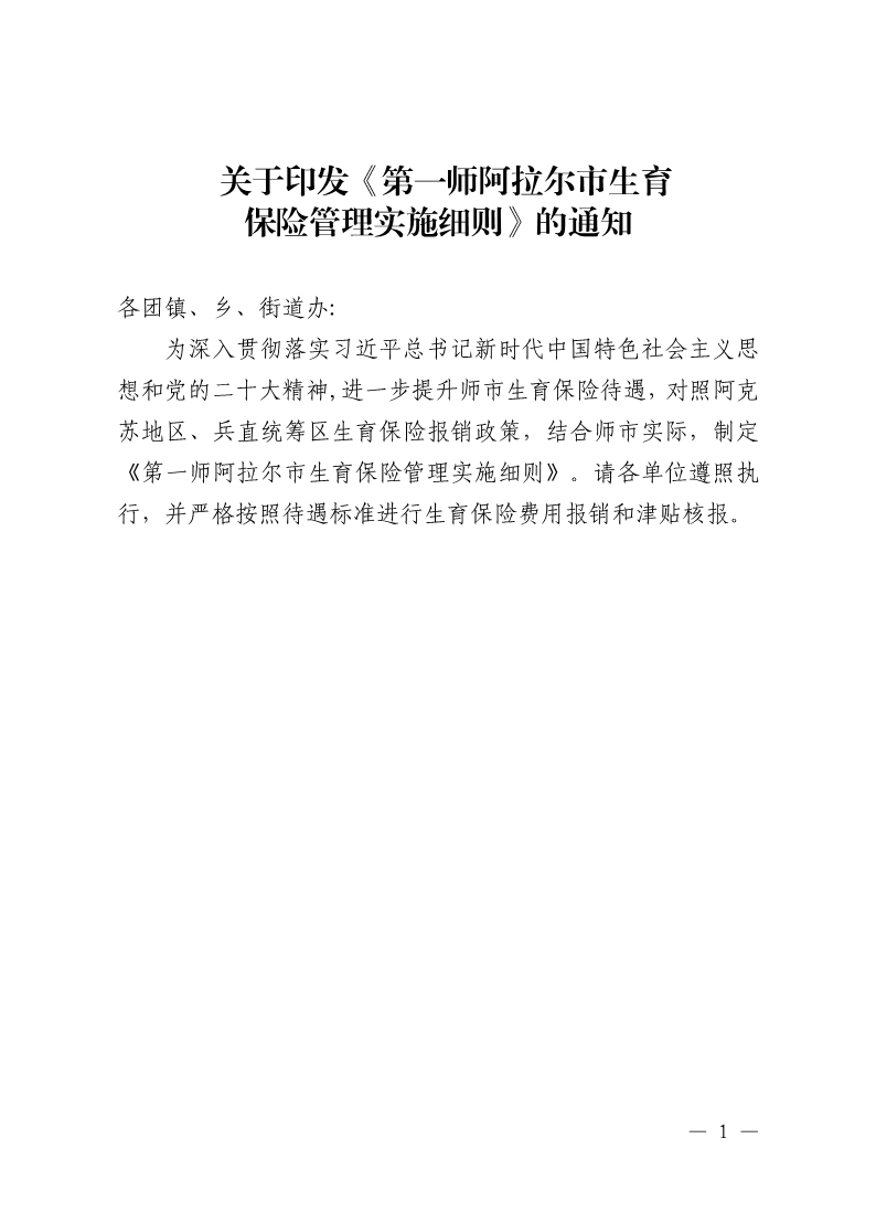 师市医保发〔2023〕19号 关于印发《第一师阿拉尔市生育保险管理实施细则》的通知
