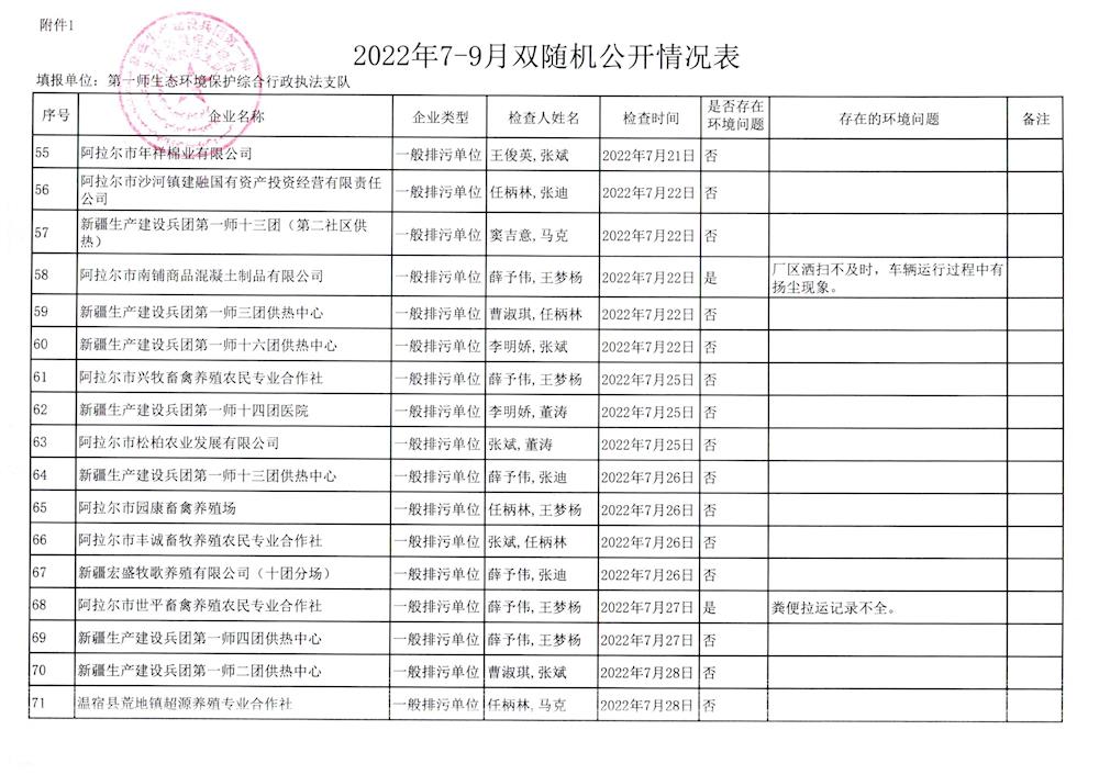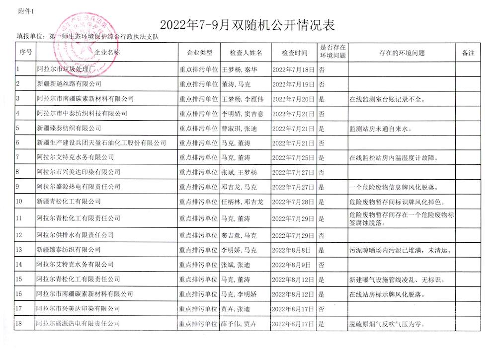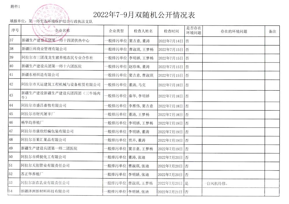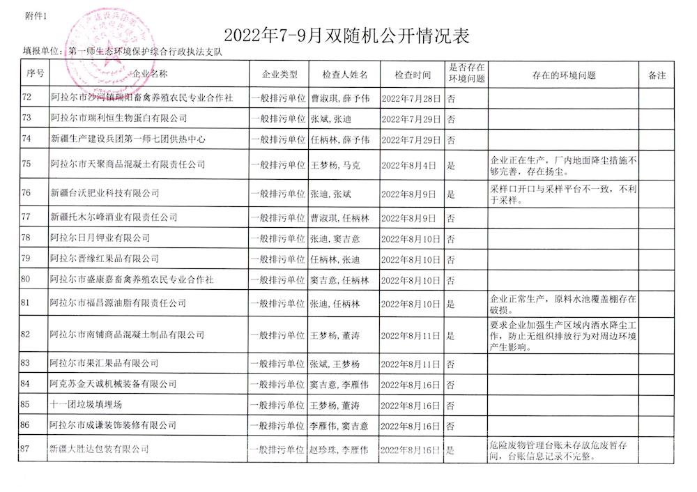 2022年7-9月双随机公开情况表