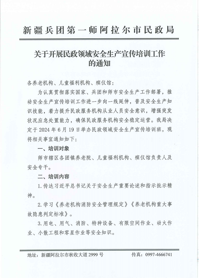 关于开展民政领域安全生产宣传培训工作通知