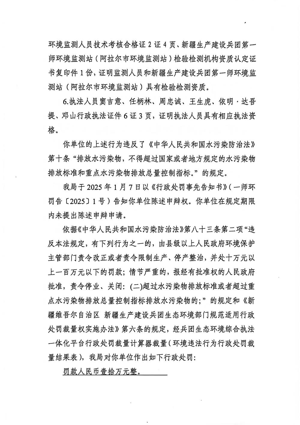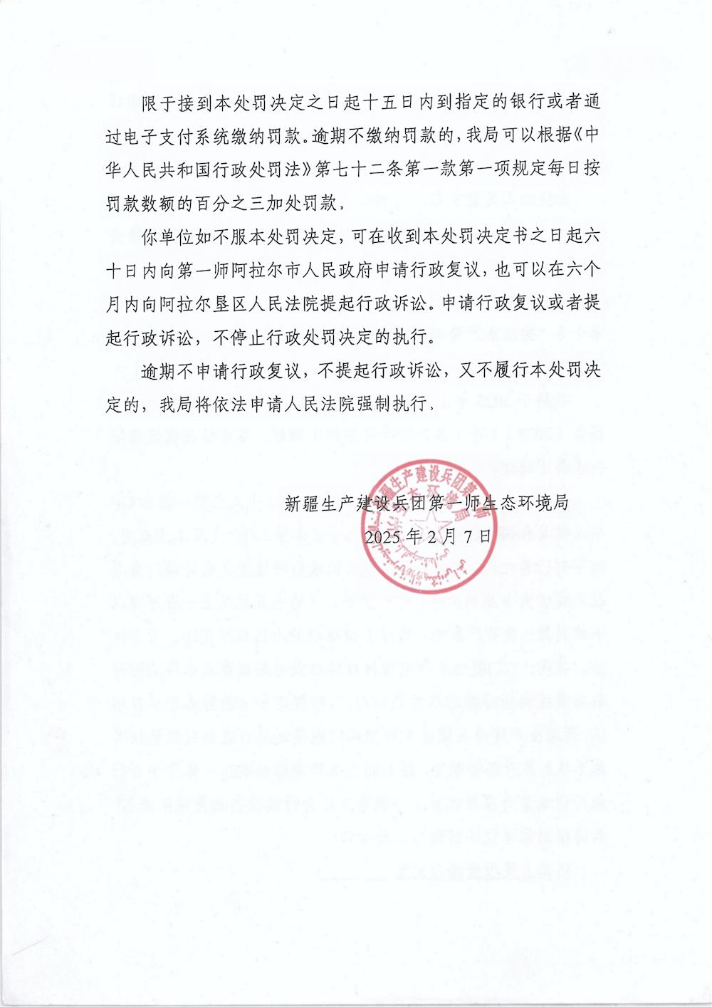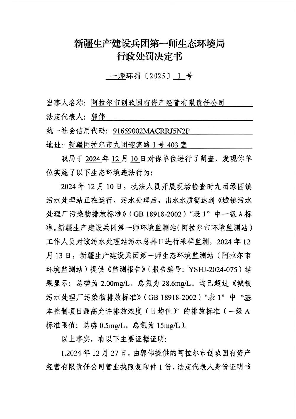 关于阿拉尔市创玖国有资产经营有限责任公司《行政处罚决定书》的公示